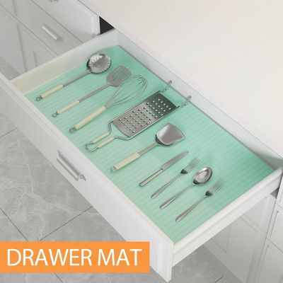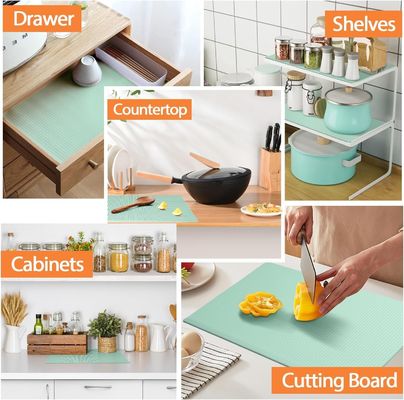 प्रत्येक लाइनर नरम, लचीला और अलग -अलग आकारों में कटौती करने में आसान होता है, जिससे वे फ्रिज अलमारियों, सब्जी दराज, अलमारियाँ और रसोई काउंटरटॉप्स सहित विभिन्न स्थानों के लिए एक आदर्श फिट होते हैं। नॉन-स्लिप बनावट यह सुनिश्चित करती है कि यह शीर्ष पर भारी जार और कंटेनरों के साथ भी रहता है।